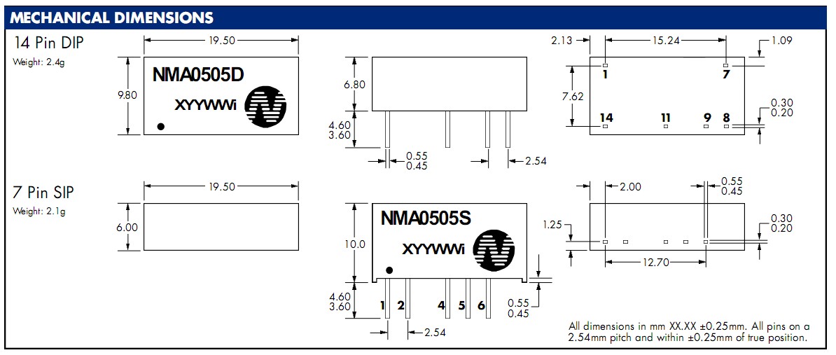 The NMA0509SC DC-DC converter is the standard building block for on-board distributed power systems. The NMA0509SC DC-DC is ideally suited for providing dual rail supplies on primarily digital boards with the added benefit of galvanic isolation to reduce switching noise. All of the rated power may be drawn from a single pin provided the total load does not exceed 1watt.